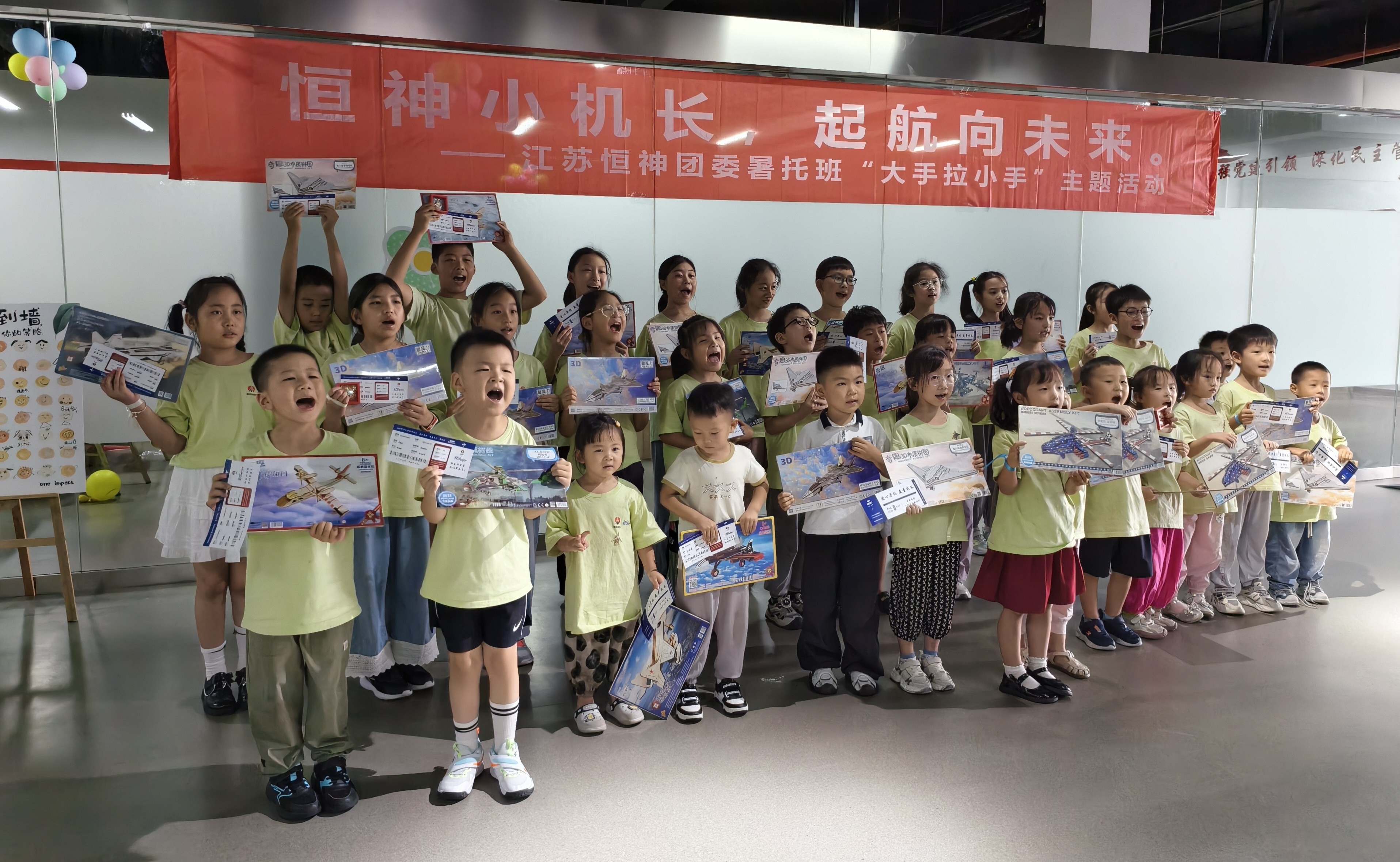 8月12日下午,恒神股份愛心暑托班的活動場地變身歡樂航空港,約50名職工子女化身 “恒神小機長”,在團委青年們的帶領和陪伴下,開啟了一場充滿歡笑與成長的航空主題奇妙之旅。這場以 “恒神小機長?起航向未來” 為主題的趣味游戲活動,讓孩子們在輕松愉快的游戲中收獲了知識、初步建立了團隊互助協作的觀念。開場破冰:舞蹈牽情誼,小隊齊集結隨著歡快的音樂旋律響起,活動正式拉開帷幕。5名團委青年與孩子們手拉手圍成圈,跟著節奏蹦跳旋轉,原本有些靦腆的小朋友們很快被活潑的氛圍感染,大廳里瞬間充滿了銀鈴般的笑聲。這場破冰舞蹈就像一根無形的線,迅速拉近了青年志愿者與孩子們的距離。在簡要的自我介紹后,大家通過抽取彩色手環,分成了紅、黃、藍、綠、白五支小隊,展開了一場場趣味比拼。趣味闖關:航空主題游戲里的知識與協作折紙飛機環節迅速點燃了孩子們的激情。大家拿著 A4 紙,跟著領隊老師學習折疊技巧,有的還別出心裁地畫上笑臉和花紋。“三、二、一,起飛!” 當數十架紙飛機穿過 “書架圓環” 時,大廳里爆發出陣陣歡呼?!拔沂瞧磮D小能手” 環節堪稱對 “速度與協作” 的考驗。當飛機拼圖被分發到各隊時,孩子們立刻圍坐在一起,七手八腳地開始拼接?!斑@塊應該在這里!”“不對,看機翼的形狀!” 團委志愿者們在旁耐心引導,既不包辦代替,又及時給迷茫的小隊員們支招。最終,各支隊伍都順利完成了拼圖任務?!帮w機連連看” 游戲成了記憶力大比拼。孩子們盯著倒扣的紙牌,時而蹙眉思考,時而拍手歡呼,團委志愿者們則在一旁計時鼓勁、還要熱心的小朋友不時用掌聲鼓勵加油。最終,所有孩子都贏得了木制飛機模型拼圖,獲勝隊伍的小朋友還優先挑選了心儀的款式。溫情收尾:徽章與機票見證成長,愛與理念扎根心間活動尾聲,每位小飛行員都領到了閃亮的 “恒神小機長” 徽章,驕傲地別在胸前。當印有每個孩子名字的 “結業機票” 被鄭重頒發時,不少小朋友舉著機票和模型向志愿者們開心地道謝。本次活動旨在讓職工子女在歡樂中感受航空精神,同時通過青年志愿者的陪伴,傳遞企業對員工家庭的關懷。這場持續兩小時的活動,像一根堅韌的 “情感碳纖維”,將企業、家庭與孩子緊緊相連。恒神團委的青年們用熱情與愛心,為孩子們的暑假添上了一抹明亮的色彩,也讓 “愛與未來一起飛” 的溫暖理念,深深扎根在每個人心中。